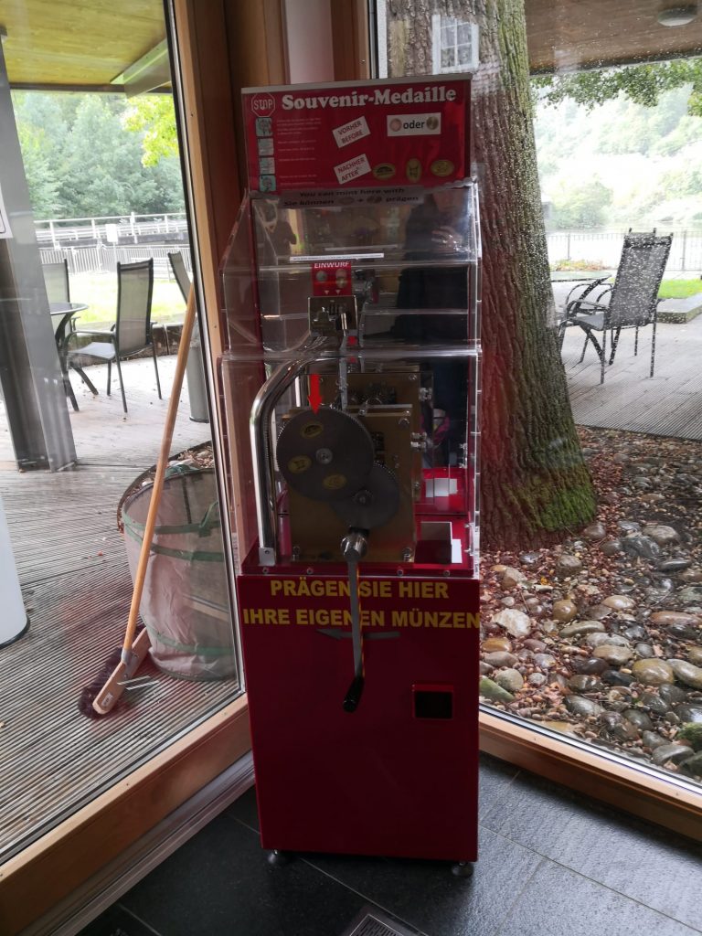 Der Automat steht nach der Kasse auf der rechten Seite in der Ecke.