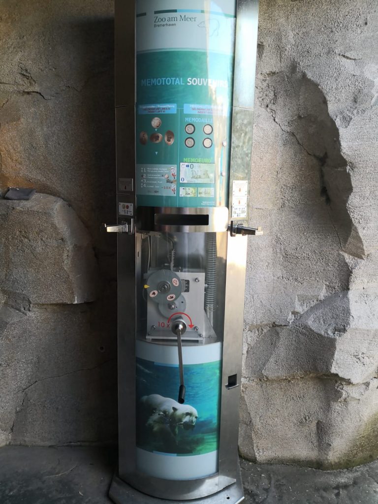 Der Automat befindet sich bei den Pinguinen vor dem Ausgang des Tunnels auf der rechten Seite.