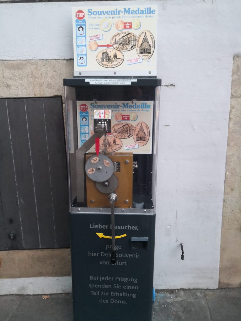 Auf ca. der Hälfte der Treppe befindet sich der Automat auf der linken Seite.