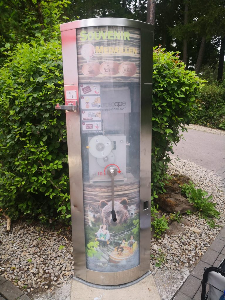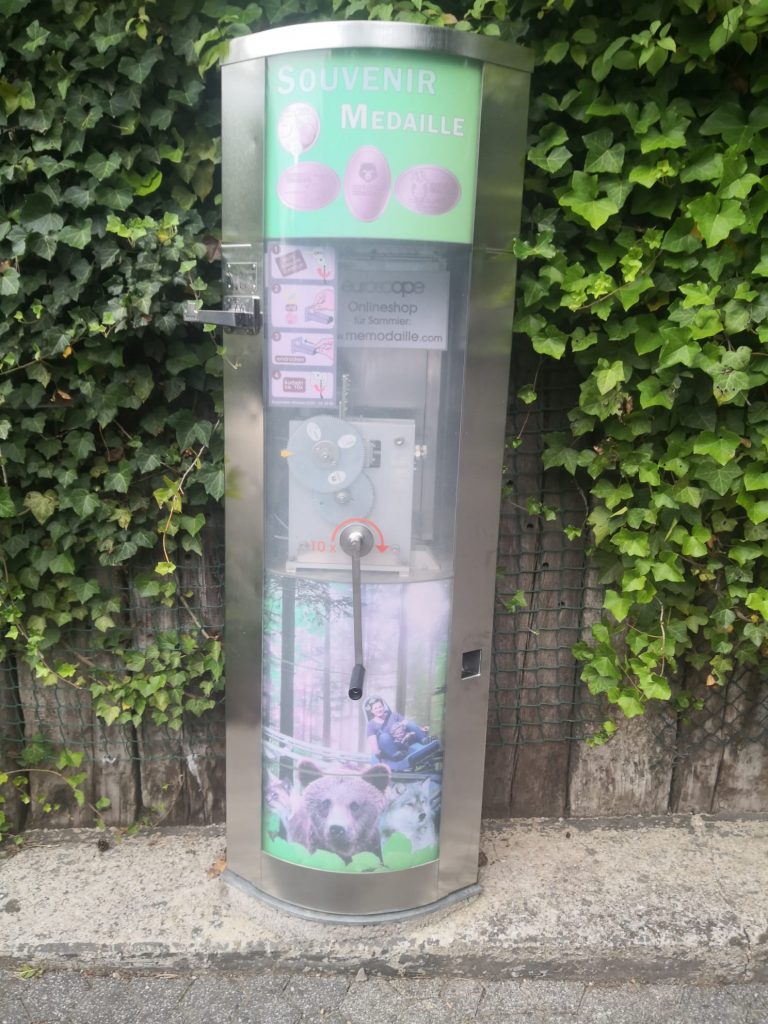 Der zweite Automat ist nach dem Vogelgehege, vor den Rutschen auf der rechten Seite.