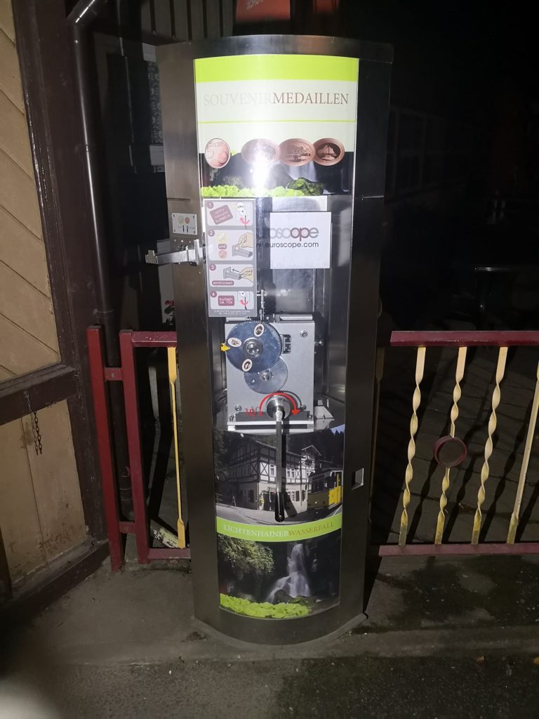 Der Automat befindet sich vom Wasserfall aus nach ca. 20m auf der linke Seite.