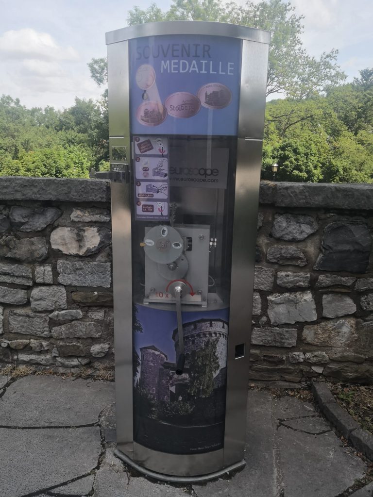 Der Automat befindet sich auf dem Plateau vor dem Burg Restaurant. Öffnungszeiten der Burg beachten.
